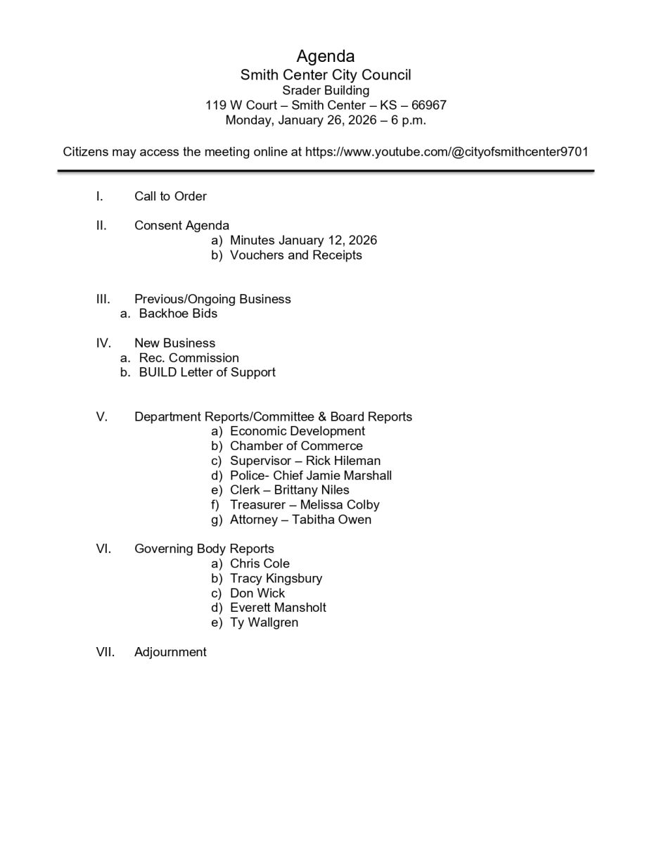 Please join us for the City Council meeting on Monday, January 26, 2026 at 6:00 P.M. Click HERE to view the agenda!